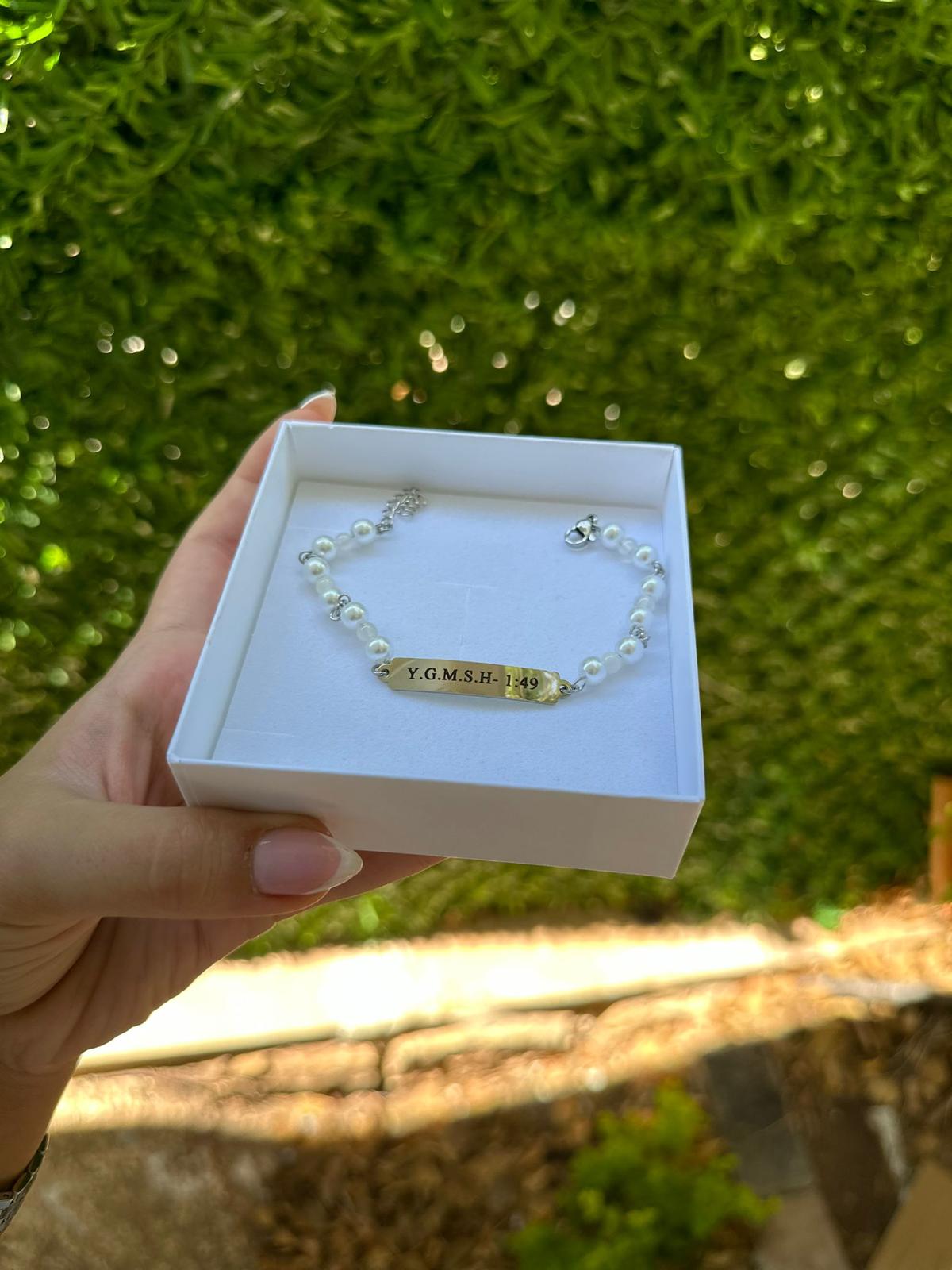 צמיד חריטה לאישה – מעוטר בחרוזים לבנים ויפהפיים
