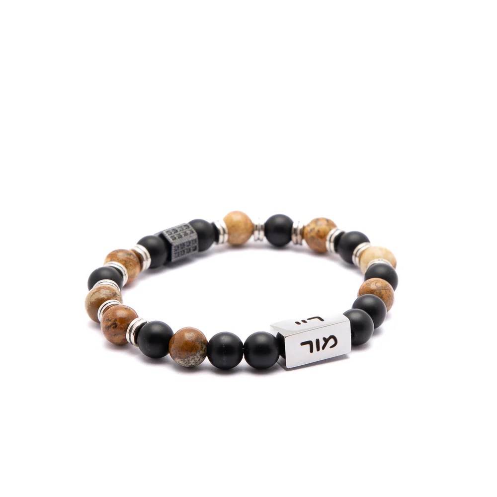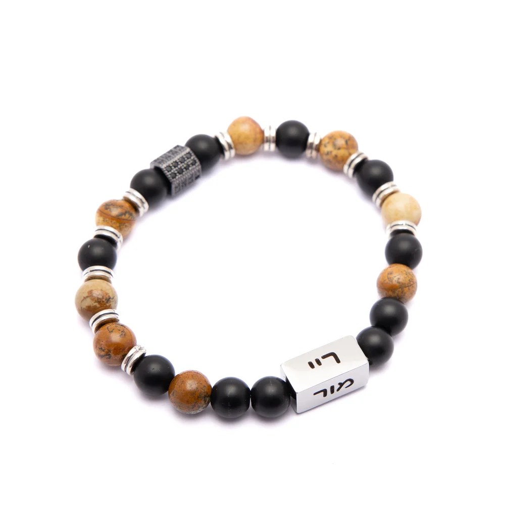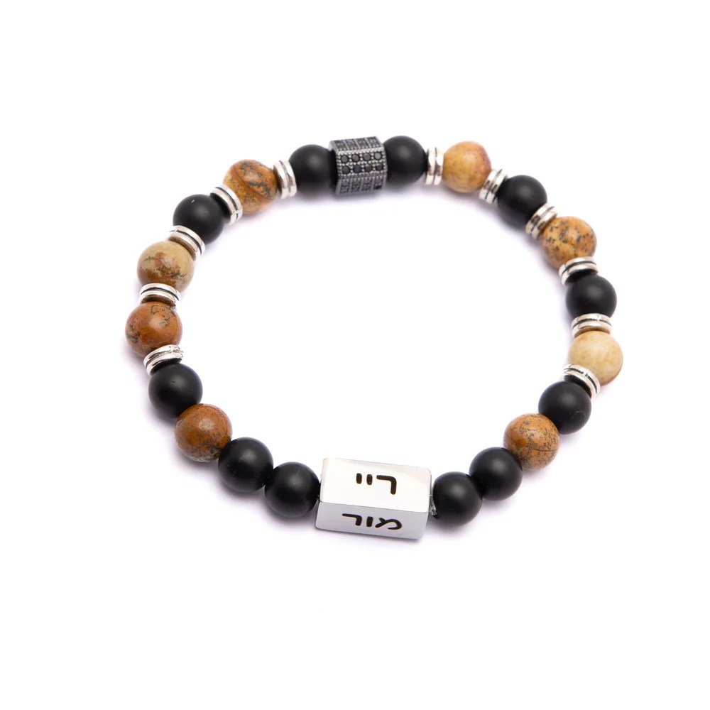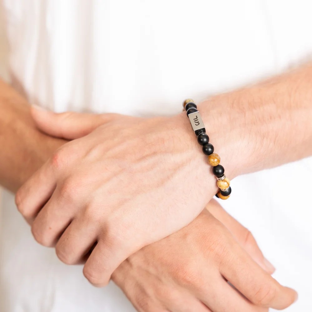צמיד חריטה לגבר בעל חישוקים שחורים חומים וכסופים יפייפים.