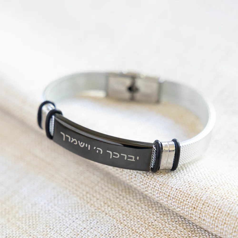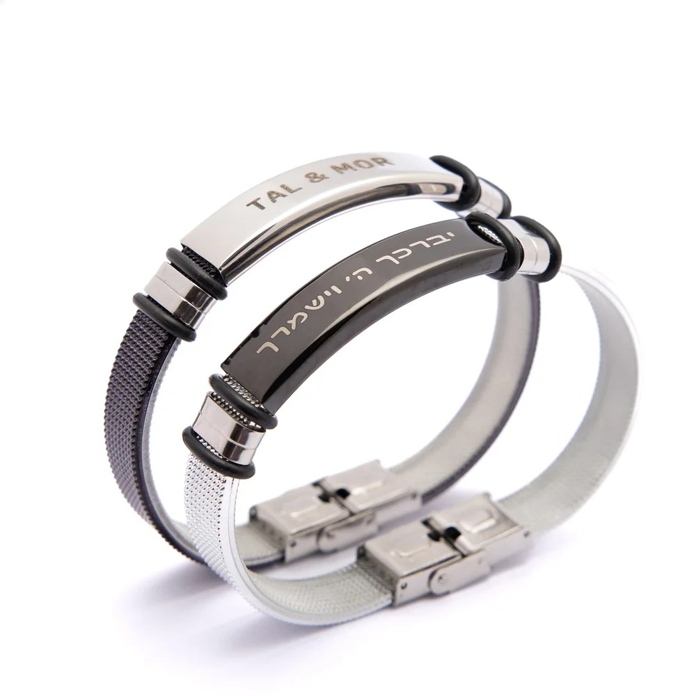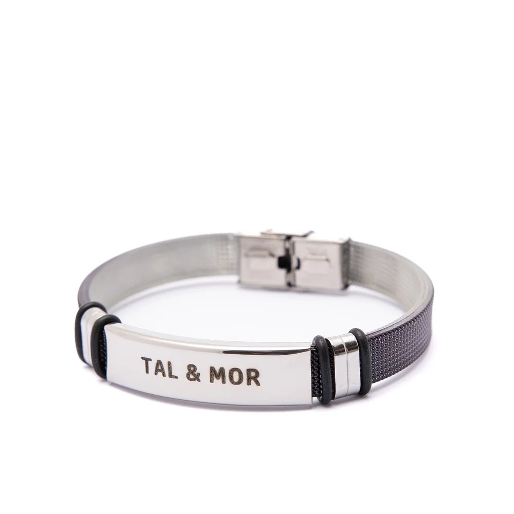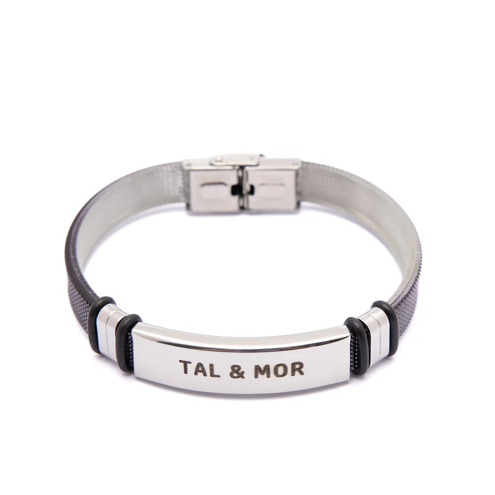 אנו מציגים את הצמיד המדהים שלנו לגברים עם באפשרויות מתכת שחורה אלגנטית או כסף יוקרתי, מושלם לחריטה אישית.